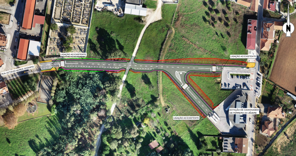 A solução proposta visa dar continuidade aos arruamentos existentes, melhorando o acesso a infraestruturas de transporte público (Central de Camionagem) e valorizando a qualidade do espaço público. O projeto respeita os critérios estabelecidos no Plano de Urbanização da Vila de Ferreira do Zêzere, garantindo o incremento da segurança rodoviária e a beneficiação das serventias locais.